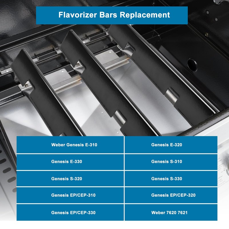 • Compatibility:Replacement flavorizer bars for Weber Genesis 300 series with Front-Mounted control knobs: Weber Genesis E-310, E-320, E-330,S-310 ,S-320, S-330 and Genesis EP/CEP 310 320 330 Gas Grills,Replaces Weber 7620 7621.Does NOT fit Weber Genesis II 300 series and Genesis II LX 300 series