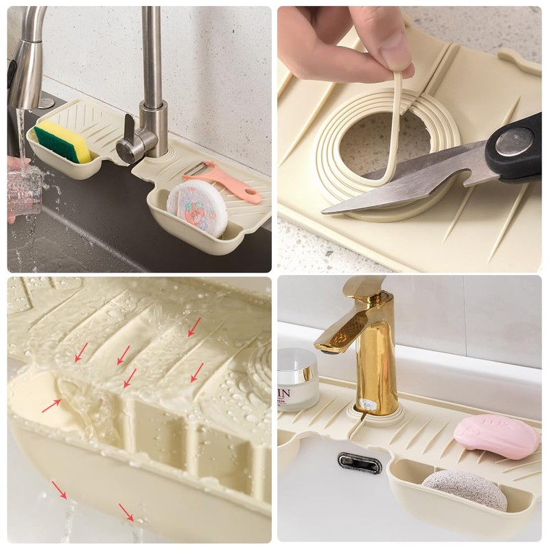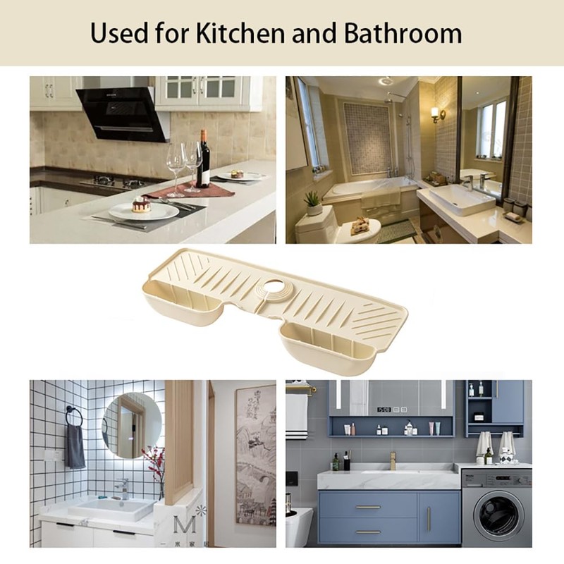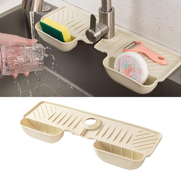 - [Faucet Mat with Two Sponge Holders Design] The sink faucet includes two built-in drain basket ,you can put the sponge to the basket , so it's convenience for kitchen and bathroom, and its strong load-bearing capacity ensures it remains intact without collapsing, even under heavy use.