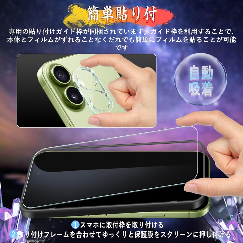 - (Bubble-Free & Easy to Install) Anti-bubble treatment prevents air bubbles from entering. Even if there is any air bubbles, it will gradually disappear over time, resulting in a beautiful finish. Automatic adsorption function, just gently press the glass onto the lens screen and it will adhere to the screen naturally. Safe for beginners and those who don't like applying films