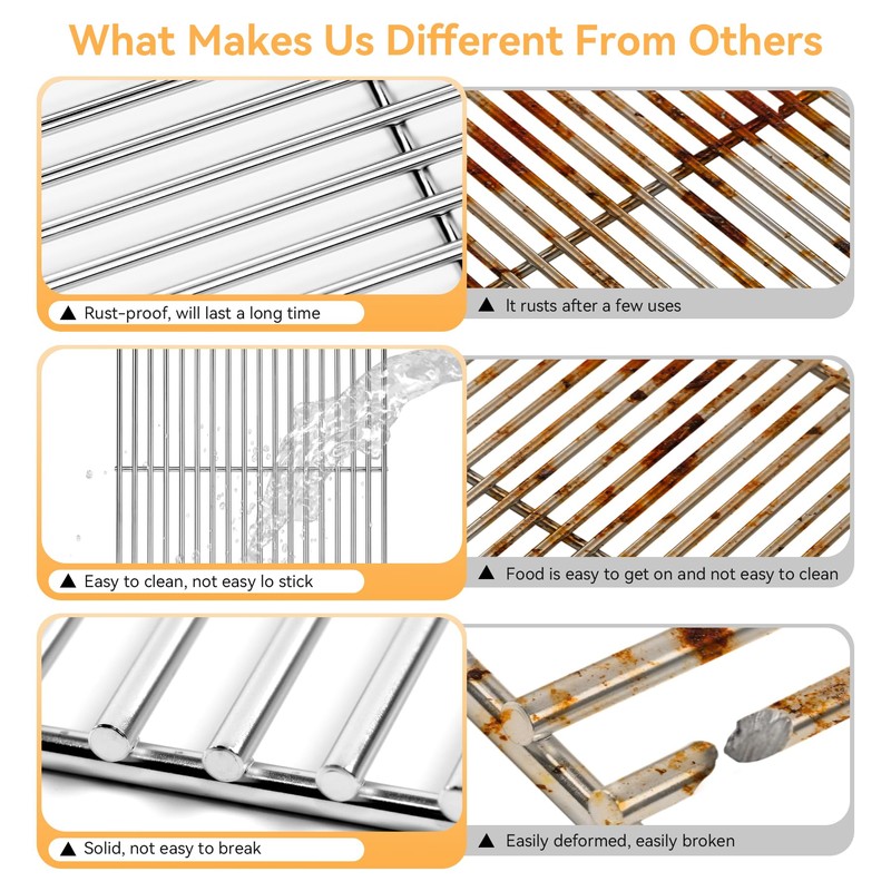 - 【Narrow Gaps】- 18 Rods/ pc, More cooking rods than OEM and others: Narrow gaps between each rod allows you to cook small food without worrying food-falling. Each grate with finger lifting holes, easy to lift with fingers. This is a quality after market replacement part.