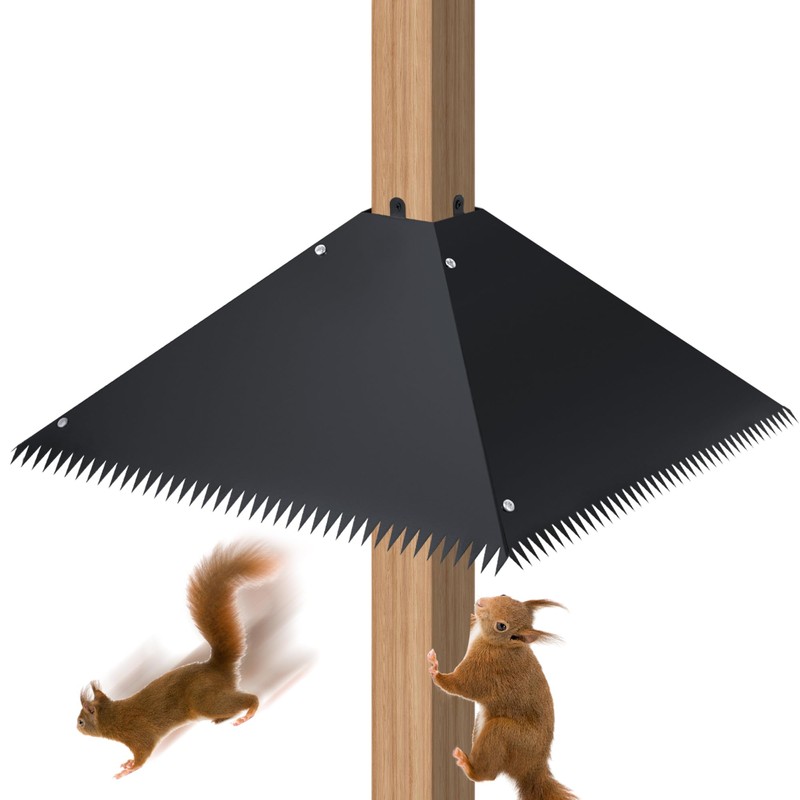 - 17-Inch Squirrel Baffle: The squirrel baffle features a square design with spikes, effectively preventing squirrels from accessing bird feeders or other items hung on poles, while ensuring your birds can enjoy their meals undisturbed. It is suitable for installation on 4x4 posts or round wooden poles with diameters ranging from 3.5 to 4.5 inches.