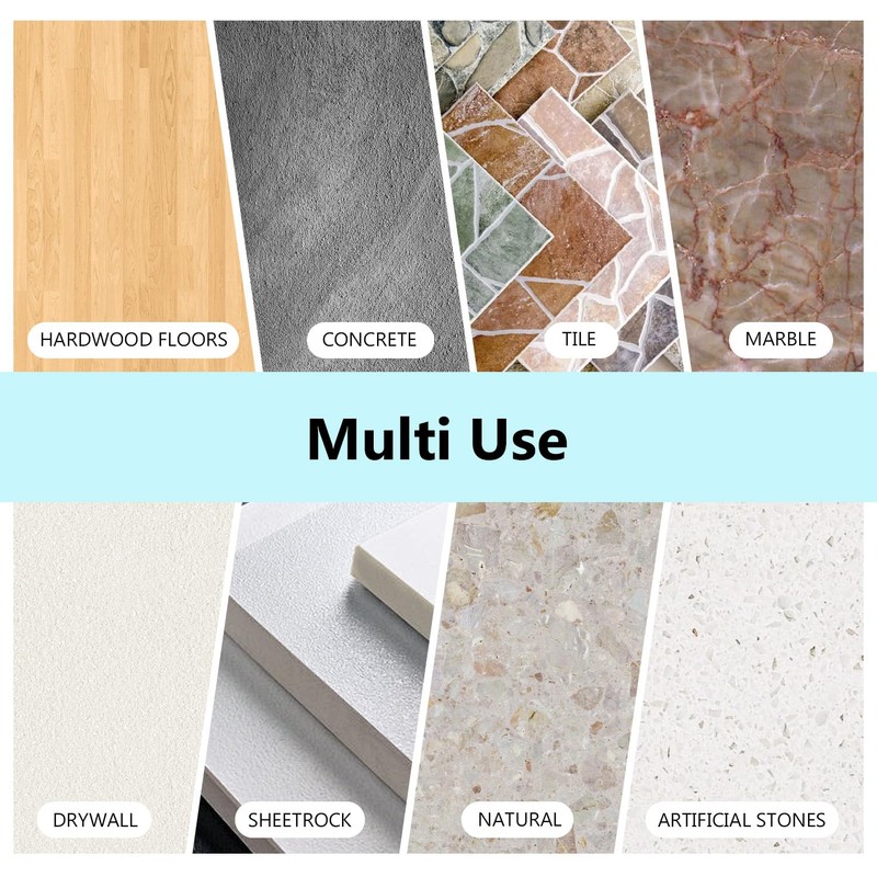 - Works well on hardwood floors, concrete, tile, marble, drywall, sheetrock, and other natural and artificial stones