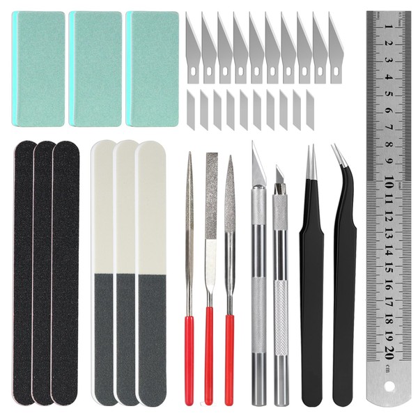 - ✅ Lieferumfang: 3 Feilen, 3 doppelseitige Schleifstäbe, 3 doppelseitige Schleifblöcke, 3 Schleifleisten mit drei Seiten, 2 Bastelmesser mit 20 Klingen, 2 Präzisionspinzetten, 1 Edelstahllineal.