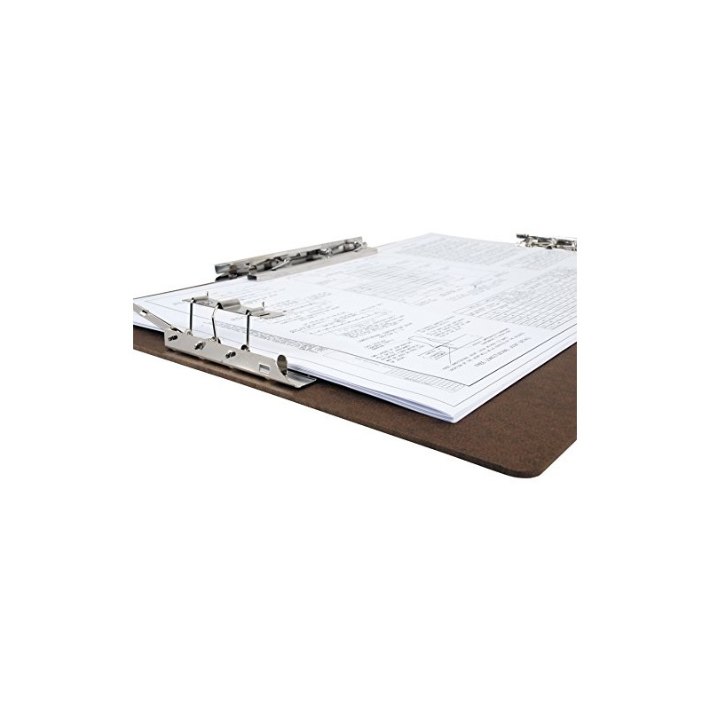 17 x 11 Inches Hardboard/Clipboard with 8-Inch Lever Operated Clip and 2 - 4" Lever Operated Clip Brown