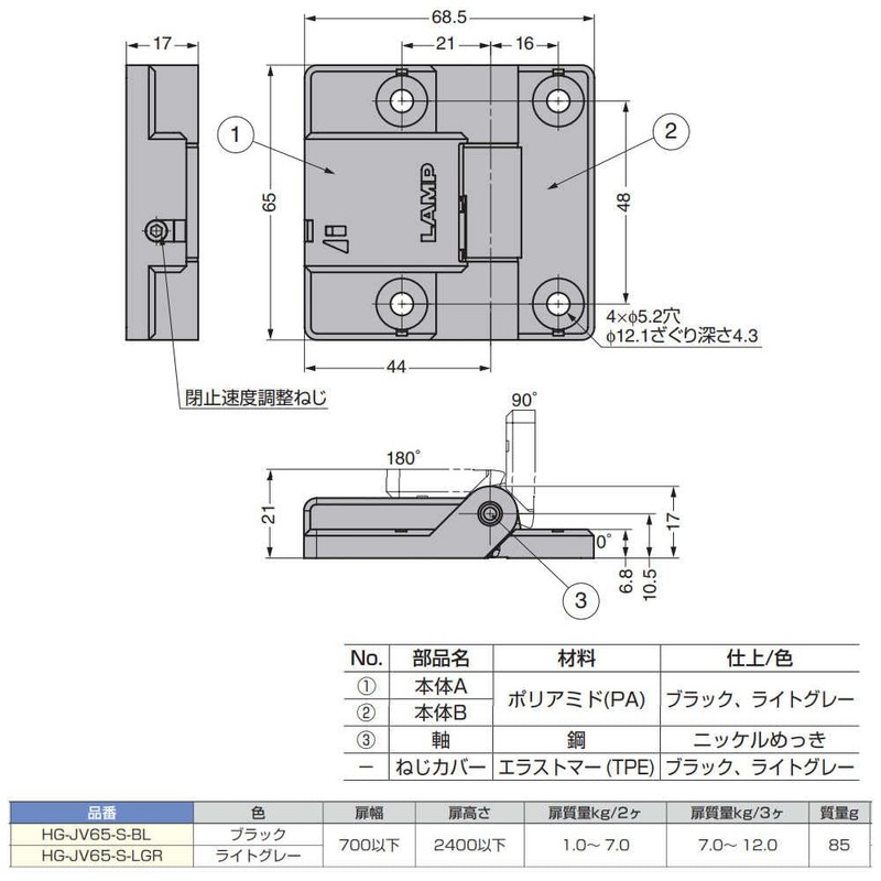 (170046272) hg-jv65-s-bl soft close hinge