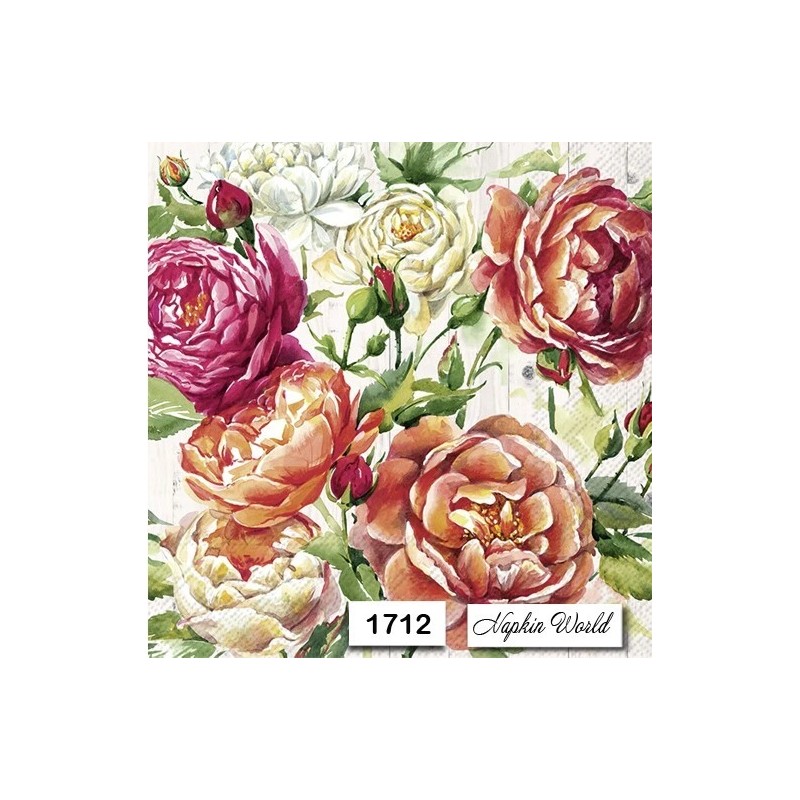 (1712) TWO Individual Paper LUNCHEON Decoupage Napkins - MIXED ROSES FLOWERS
