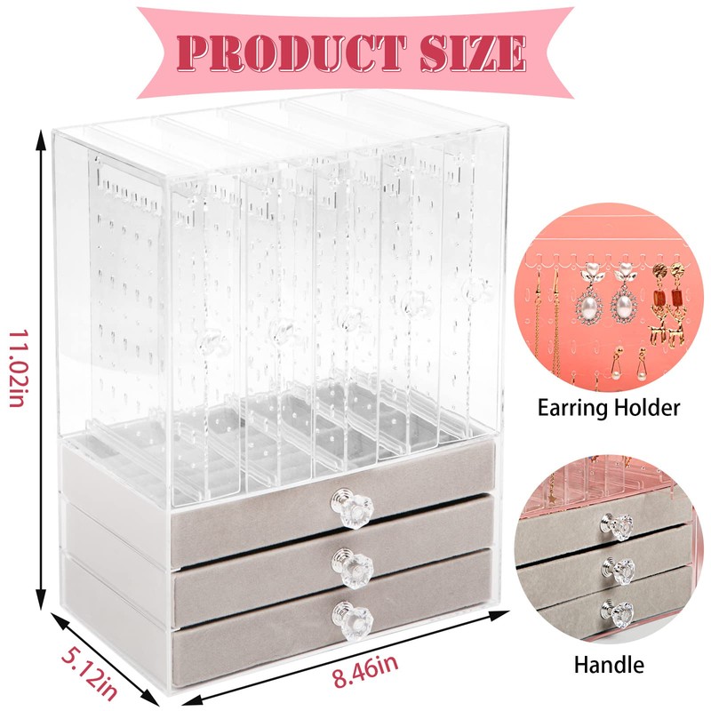 17Dec Acrylic Jewelry Holder Organizer Box with 5 Display Clear Earring Holder Organizer Drawer,3 Velvet Jewelry Organizer Stand Tray.Acrylic Jewelry Box Organizer for Earring Ring Necklace Bracelet