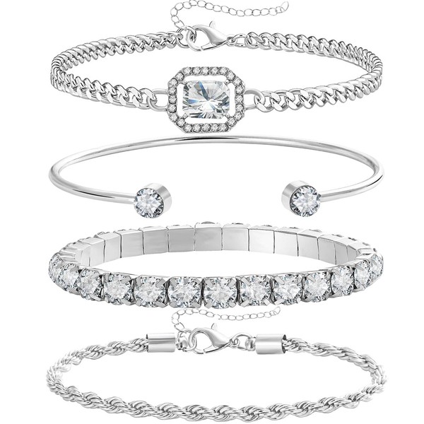 - Quality: Silver Bracelets is made of high alloy with AAA+ cubic zirconia, 14K real silver plate surface, nickle free lead free, and hypoallergenic, no harm to skin.