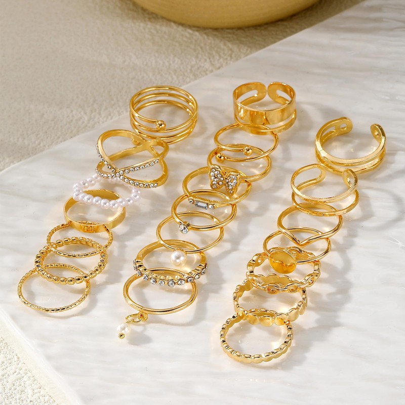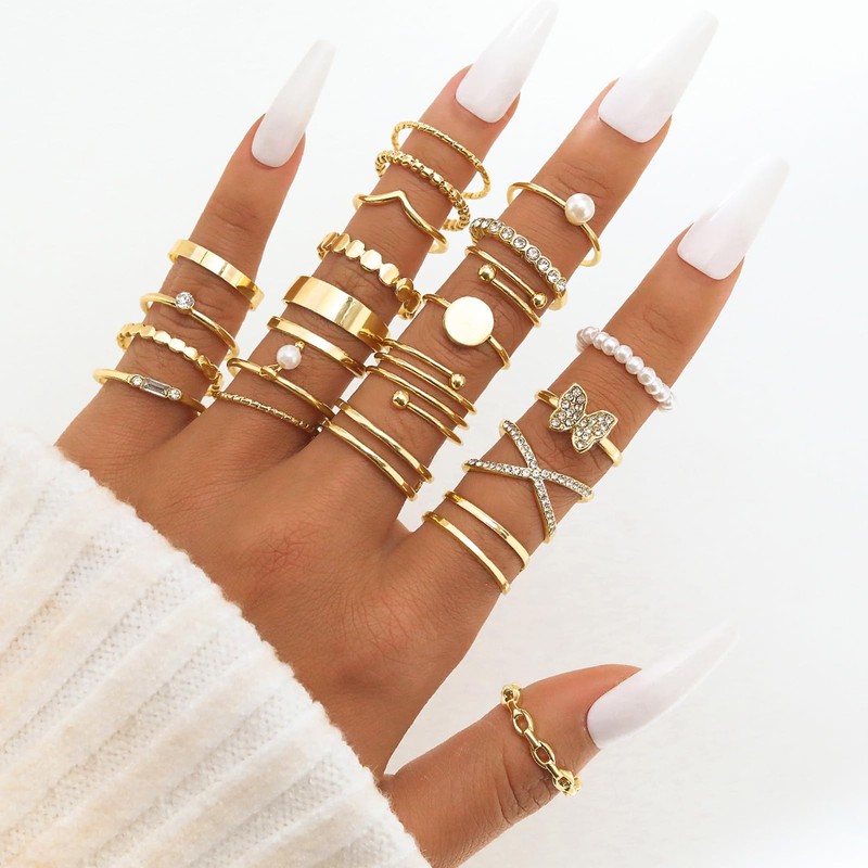 17IF 22 Pcs Gold Vintage Knuckle Ring Set for Women, Boho Crystal Finger Aesthetic Pearl Sparkle Butterfly Chunky Stackable Midi Ring Pack (CrystalButter)