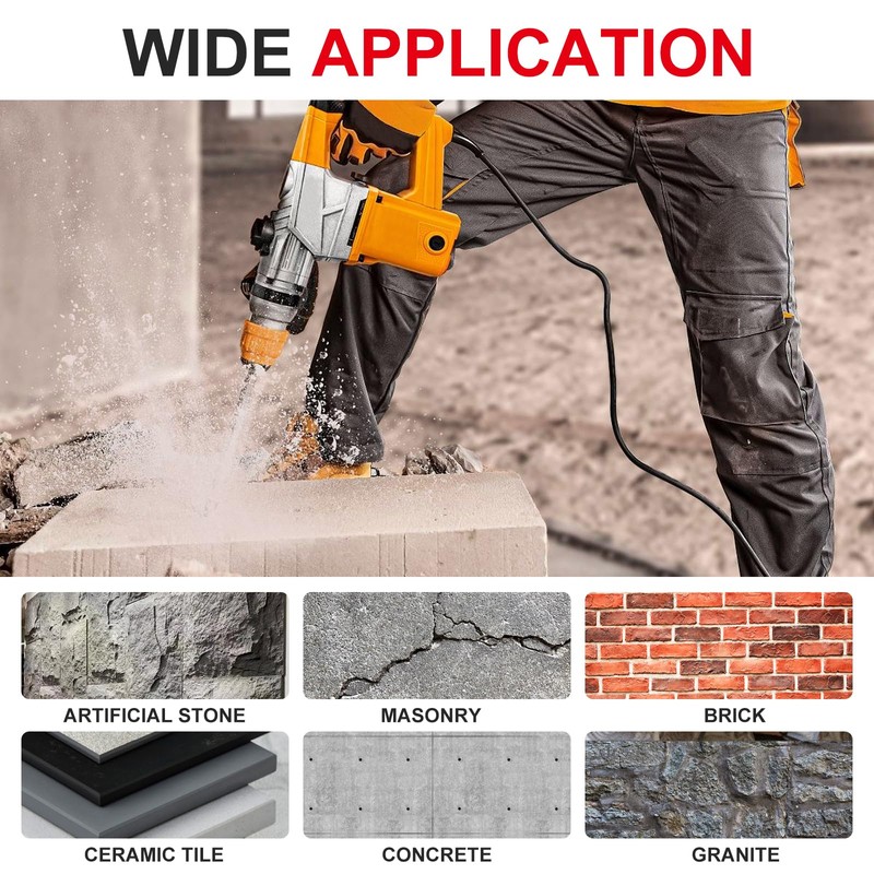 • Material: Featured in a harder YG8C Carbide tip and 40Cr carbide steel body which provides outstanding hardness and durability. They are harder, tougher and more resistant and durable to extreme loads for longer tool life and faster performance in masonry