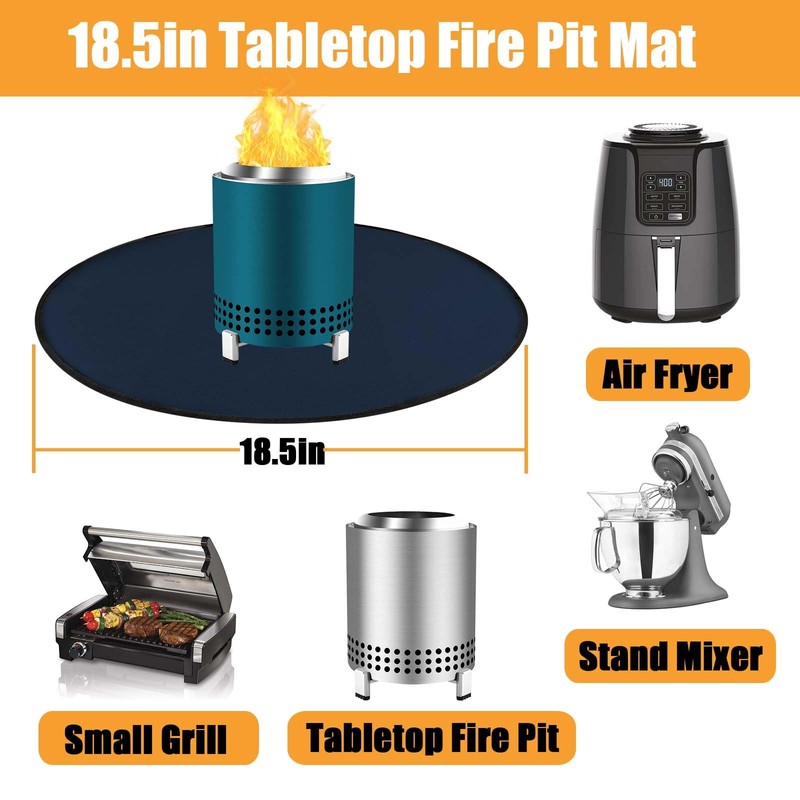 - 【Multipurpose】This small fire pit grill mat measures 18.5in and is perfect Compatible with the Solo Stove Mesa Tabletop Fire Pit and other tabletop fire pits that are around 6" in diameter. This fire pit mat can also be used as grill mats for many small grills, air fryer mats, heat resistant countertop mats.