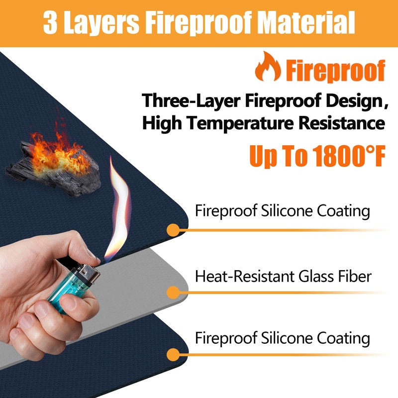 - 【Oilproof & Easy To Clean】Our tabletop fire pit mat has a smooth surface, which is not only waterproof and oil-proof, but also easy to clean. After use, you only need to rinse with a garden hose or clean with dish soap.