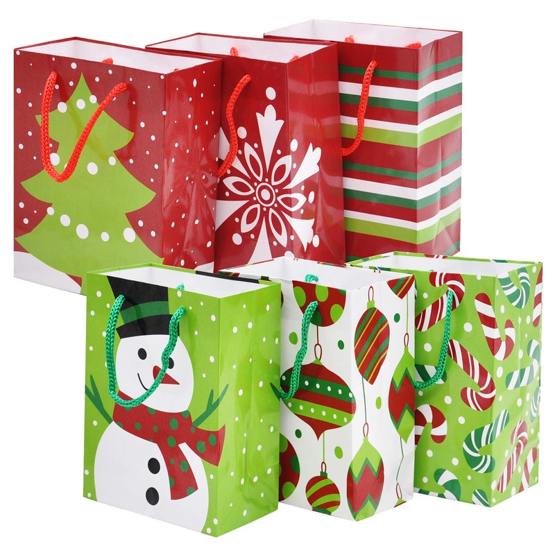 - SUPER VALUE PACK. Our Xmas Gift Bags include 18 pieces of Paper Gift Bags with 6 designs, measuring 4.3" wide x 5.75" tall x 2.5".