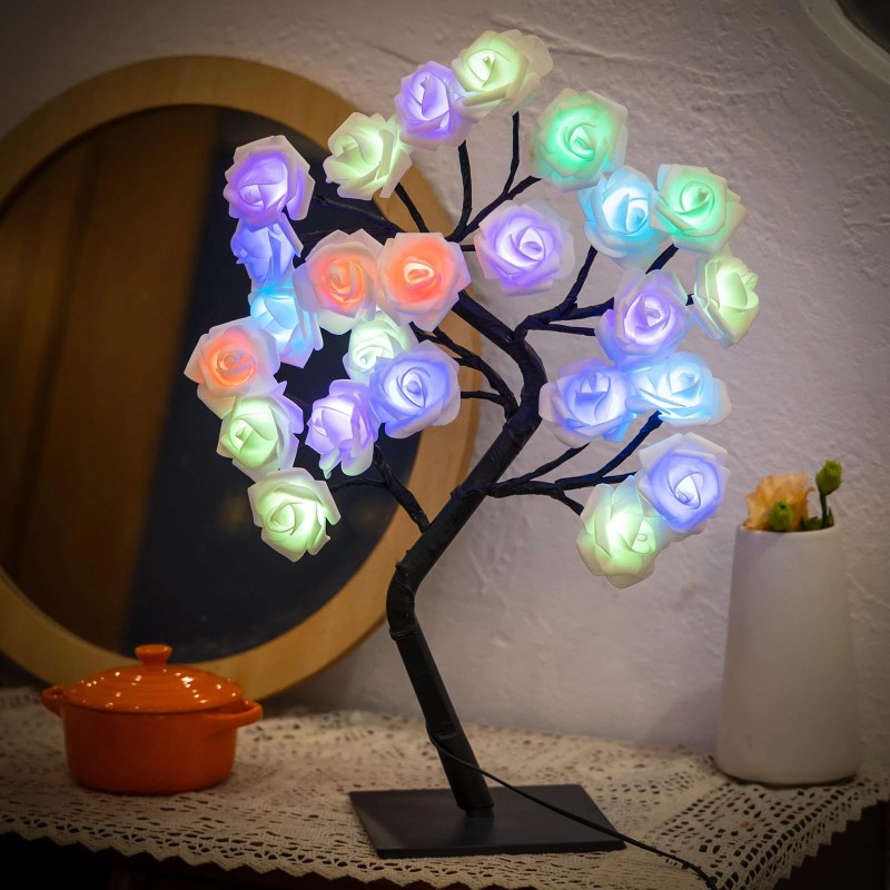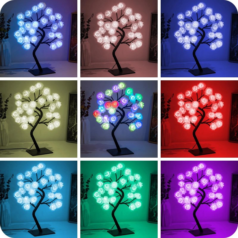 - 18 Colors Rose Tree Lamp - Multicolor LED Rose Flower Night Light Pink Flower Lamp Rose Lamp Tabletop Bonsai Tree for Wedding Valentine's Day Decorations Wedding Girls Party Bedroom PRODUCT FEATURES: