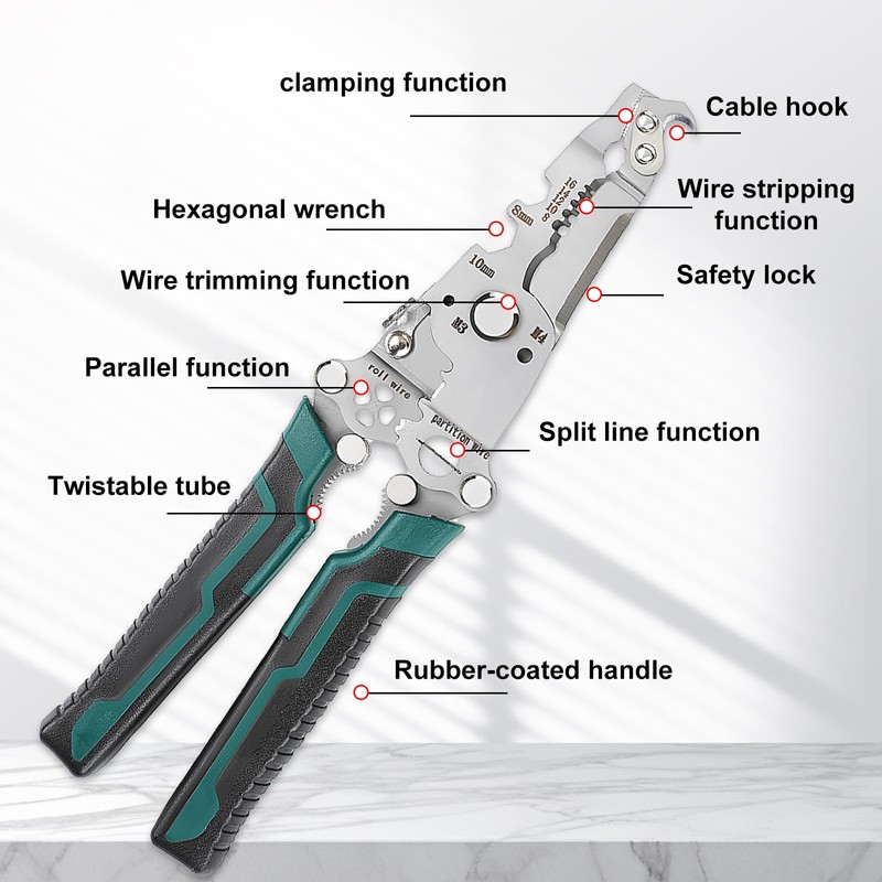 - With 18 functions to effectively strip, cut, crimp and handle a wide range of wires and cables, this professional grade wire stripper tool is built for electricians as well as DIY enthusiasts. Whether you need to use a wire stripper or a professional wire cutter, it's sure to meet your needs!