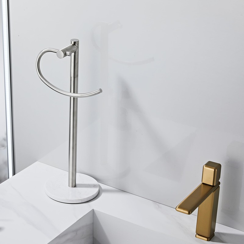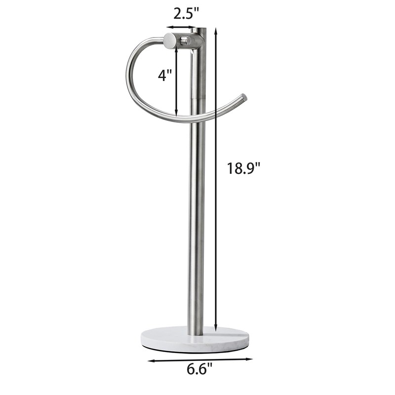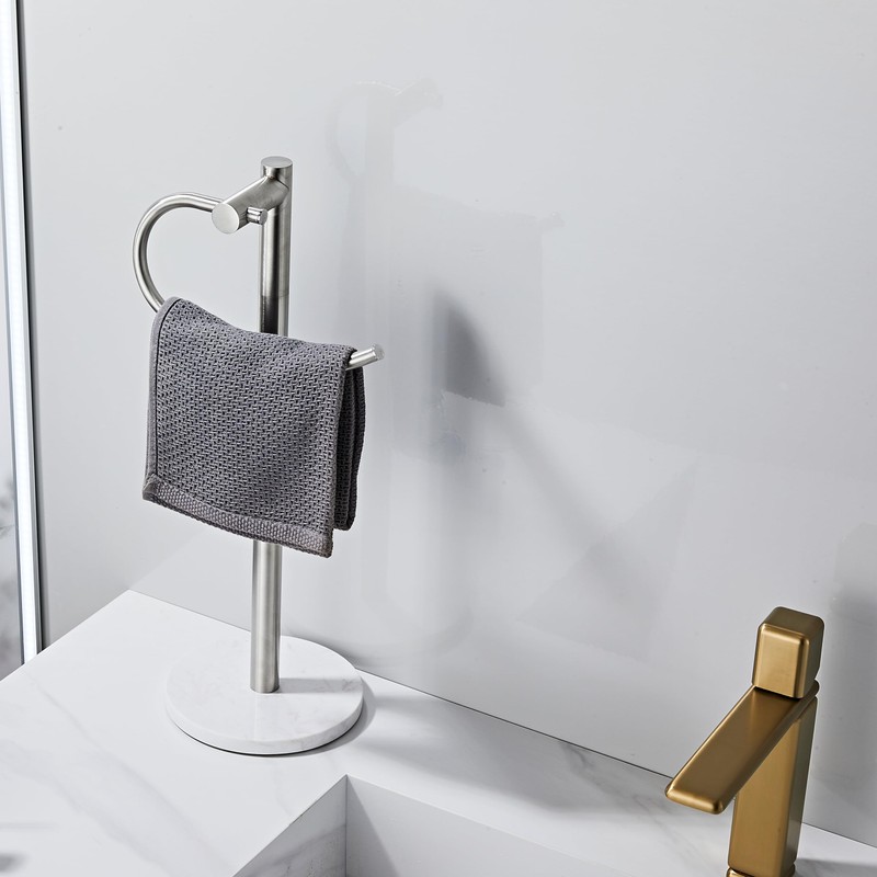 - MODERN DESIGN: Sleek brushed nickel towel holder with elegant marble base combines contemporary style with functionality for your bathroom counter or vanity
