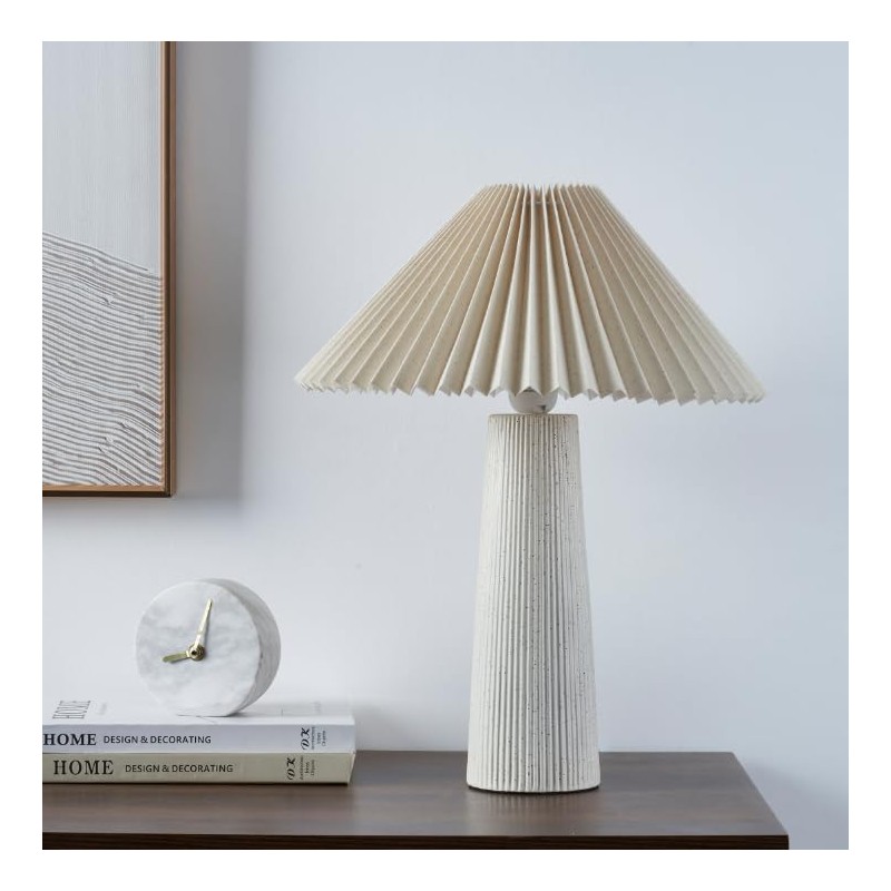 - Elegant Design: This 18" table lamp features an ivory ceramic cylinder base and a pleated fabric lampshade for a modern, minimalist aesthetic.