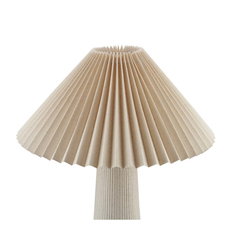 18" Ivory Pleated Shade Ribbed Ceramic Table Lamp, Modern Design