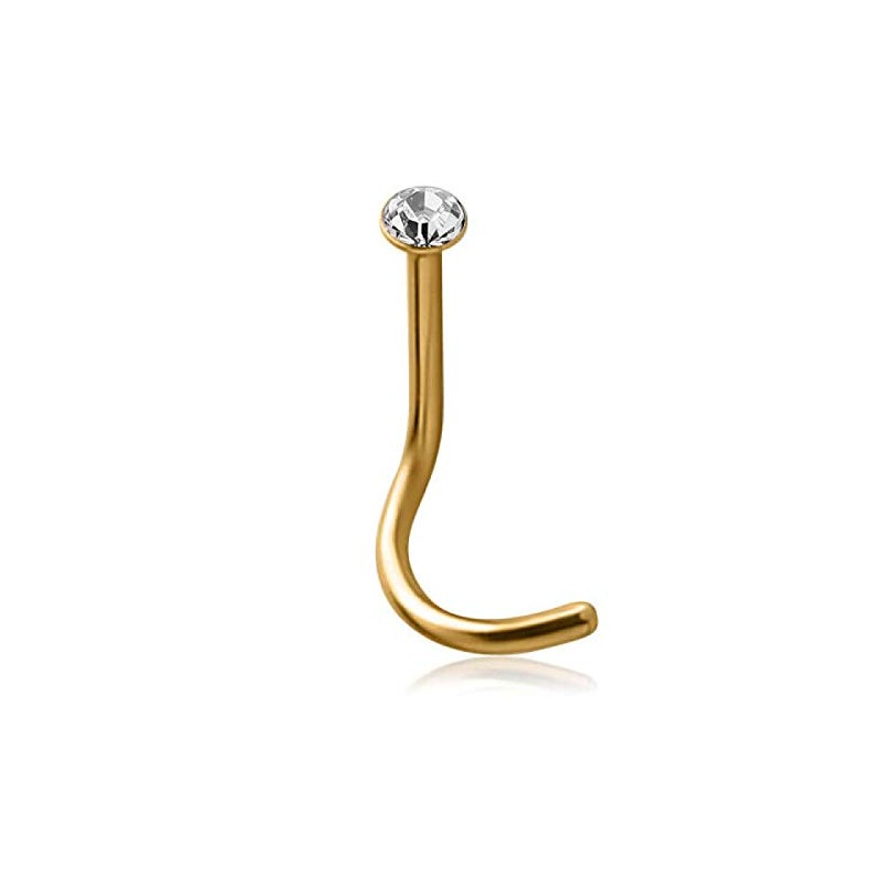 - Nasenstecker aus 18 Karat vergoldetem Stahl mit 2,25 mm österreichischem Kristall-Strass. Nasenstecker aus 18 Karat vergoldetem chirurgischem Stahl, 3 Mikron, Korkenzieherform. Österreichischer Kristall für garantierte Brillanz. Konische Unterseite für eine Mindestdicke: 1 mm, sobald sie positioniert ist.