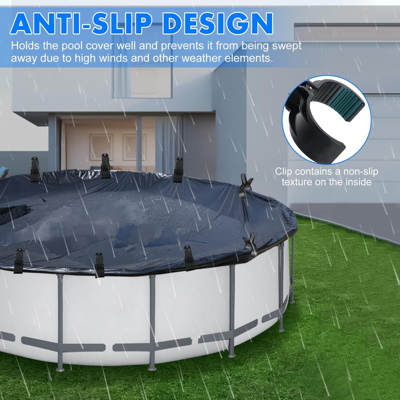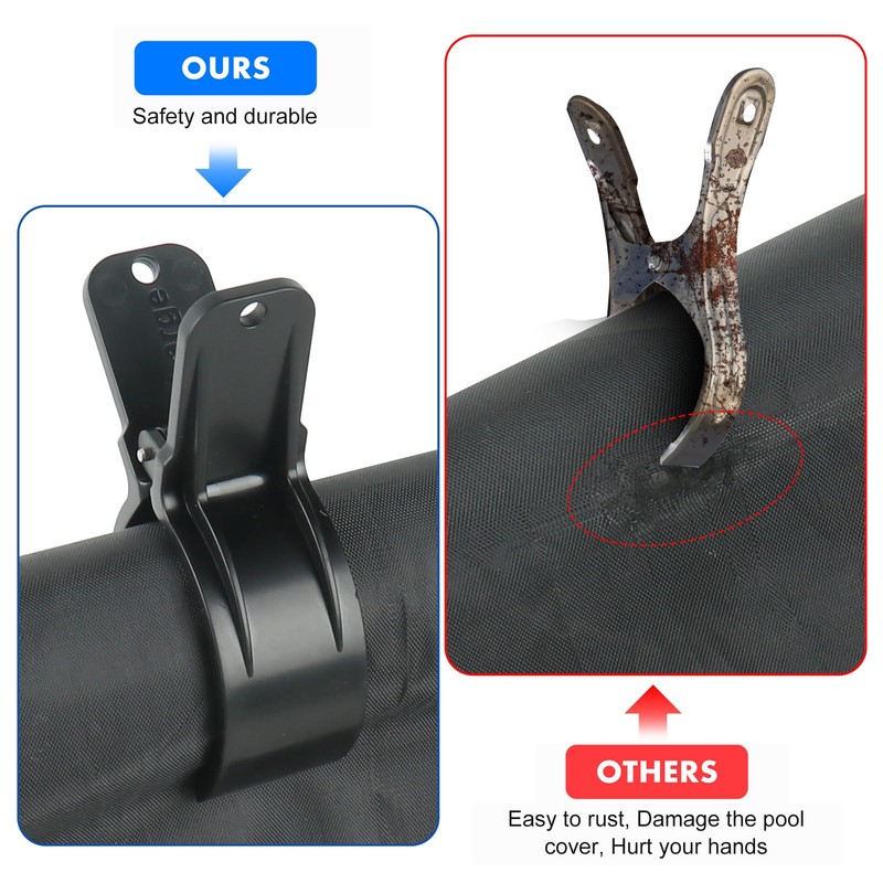 • Scratch resistant design: to protect your pool cover from scratches; Our above ground pool cover clips are made of high quality plastic; The edges are rounded to effectively prevent the edges of the clips from scratching the surface of the pool cover