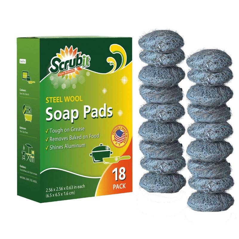 - ✪ PRE-SOAPED: These scrub-it scourer steel wool soap pads have soap inside of them already, so they’re ready to wash and remove tough messes right out of the packaging.