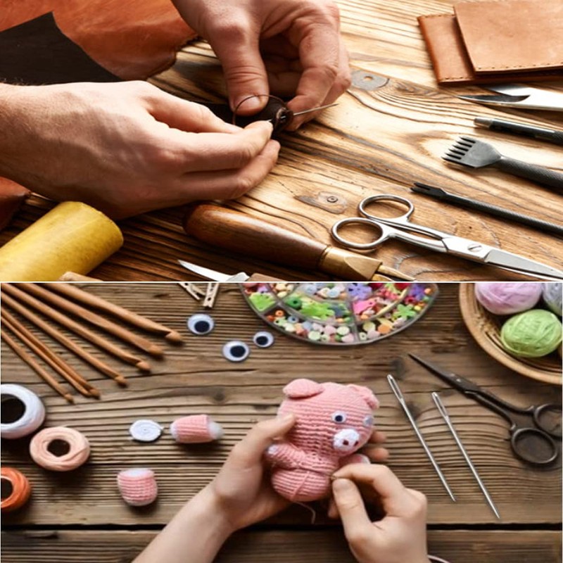 The sewing needles set are very suitable for knitting and crochet projects. They are very strong, they can easily go through the fabric. In addition to sewing fabrics, these sewing needles are also suitable for sewing leather, handbags, wallets, belts, jeans etc.