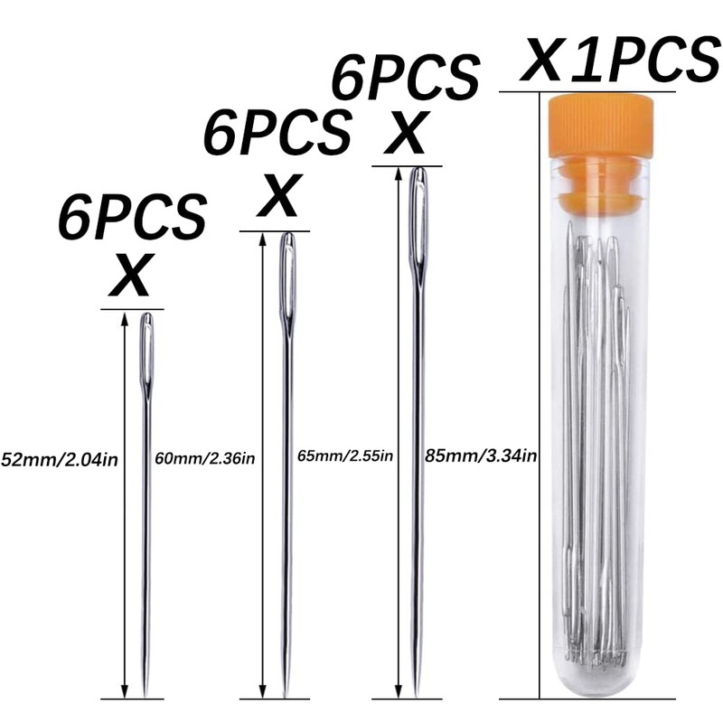18 Pieces Big Eye Sewing Needle, 3 Sizes Sewing Needles, Hand Sewing Needle, Large Eye Stitching Kintting Stitching Needles Set