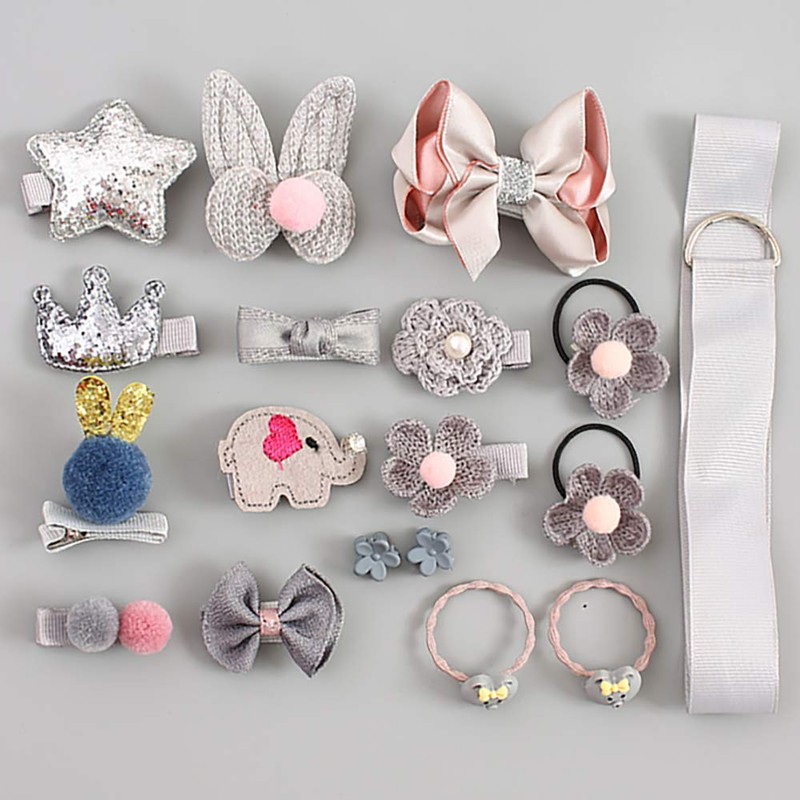 - 1) 18 Pieces Hair Accessories Gift Set- Unique design hairpin set in the shape of crown flower and bowknot give girls a variety of options. Includes 4 multiple styles of elastic hair ties, 11 cute hair clips, 2 mini hair craws, 1 hair clip storage belt. Gift set is approximately 1.18 x 5.12 x 6.69 inches (3 x 13 x 17 cm)