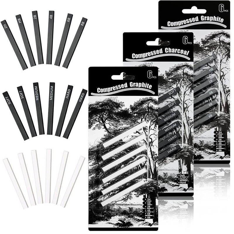 - Rich in quantity: there are 12 pieces of black assorted graphite rods with different types, namely 2H, 2B, 4B, 6B, 8B, HB, soft, medium and hard, and 6 pieces of white compressed charcoal sticks, which are sufficient for you to choose and use, and ideal for creating beautiful pictures and drawings to meet your various needs for different types of paintings
