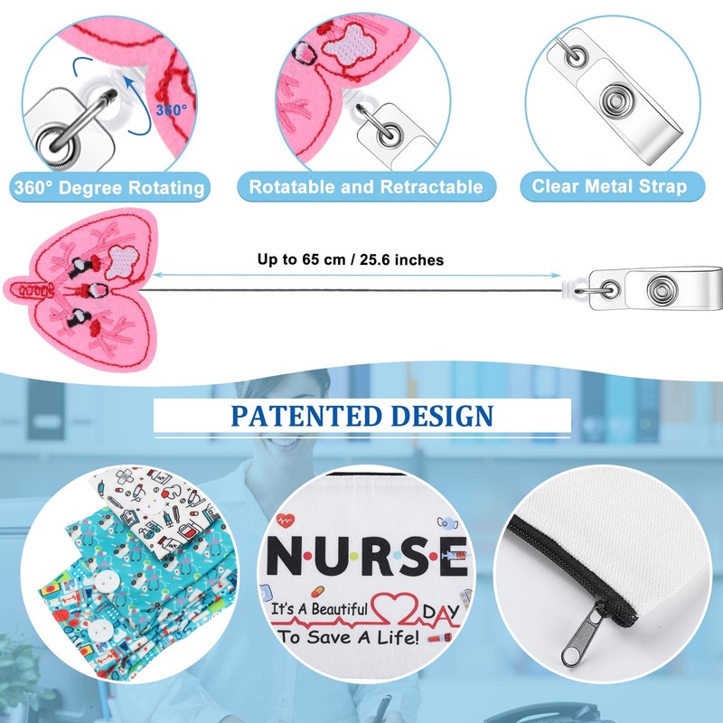 - Package Content: you will receive 6 pieces nurse makeup bags in 3 styles, 6 pieces headbands with buttons for mask in 3 styles, 6 pieces retractable felt badge reel for nurse in different style, which can serve as nice presents for nurses in various department, like nursing assistant, nursing student and your nursing friends