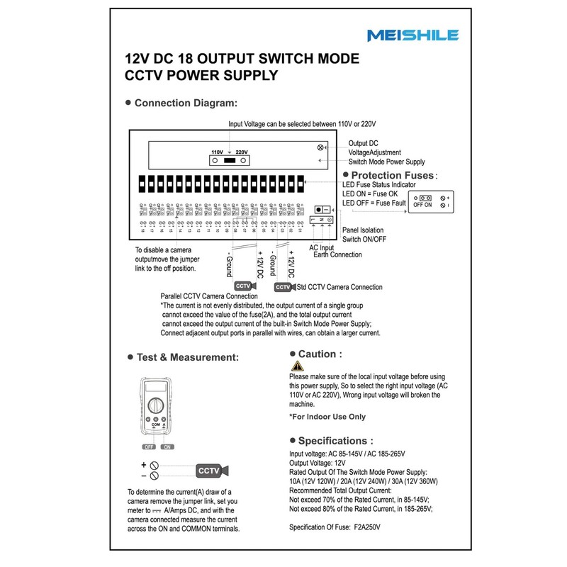 - MULTIPLE USES: can be used to power DC 12V devices, including CCTV security equipment, Cameras, DVRs, Mics, and Lighting equipment