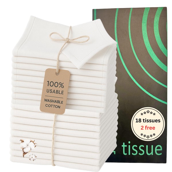 18 Reusable Tissues with 2 extra tissue, Travel Size Cloth Tissue Pack Made of Soft Cotton- Washable Facial White handkerchiefs - Eco Friendly Fabric with Zero Waste Cloths