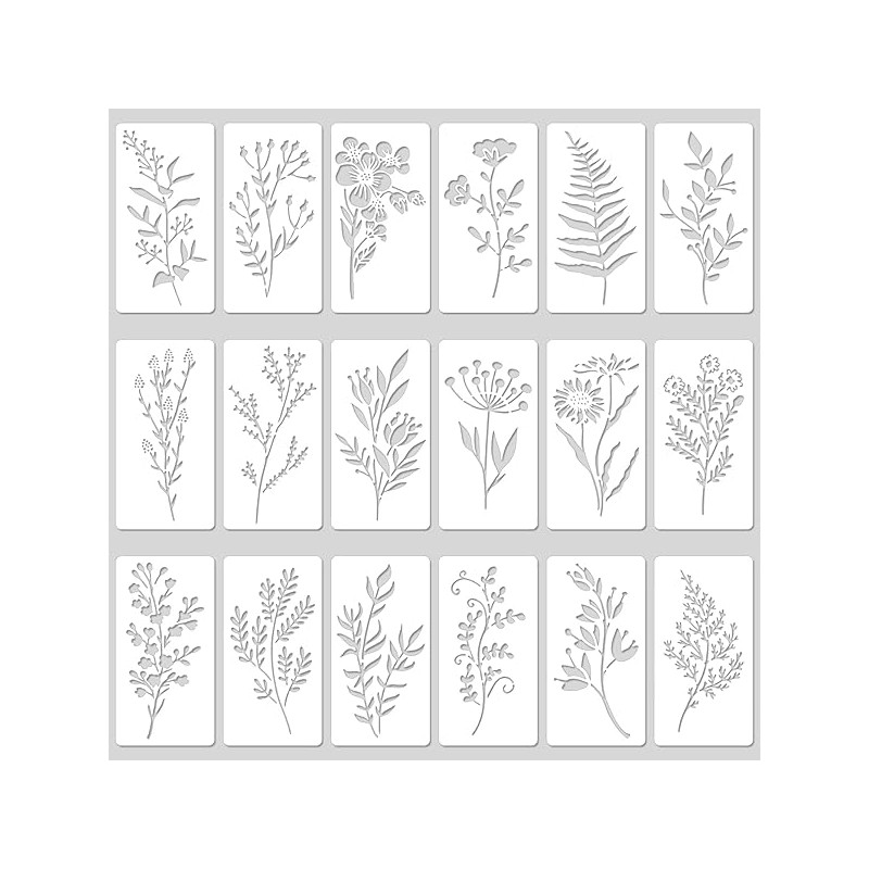18 Sheet Flower Stencils for Painting, 5.9x2.95in Floral Stencils Reusable Leaf Vine Stencils Waterproof Wildflower Art Drawing Templates for DIY Crafts Wood Walls Canvas Home Decor