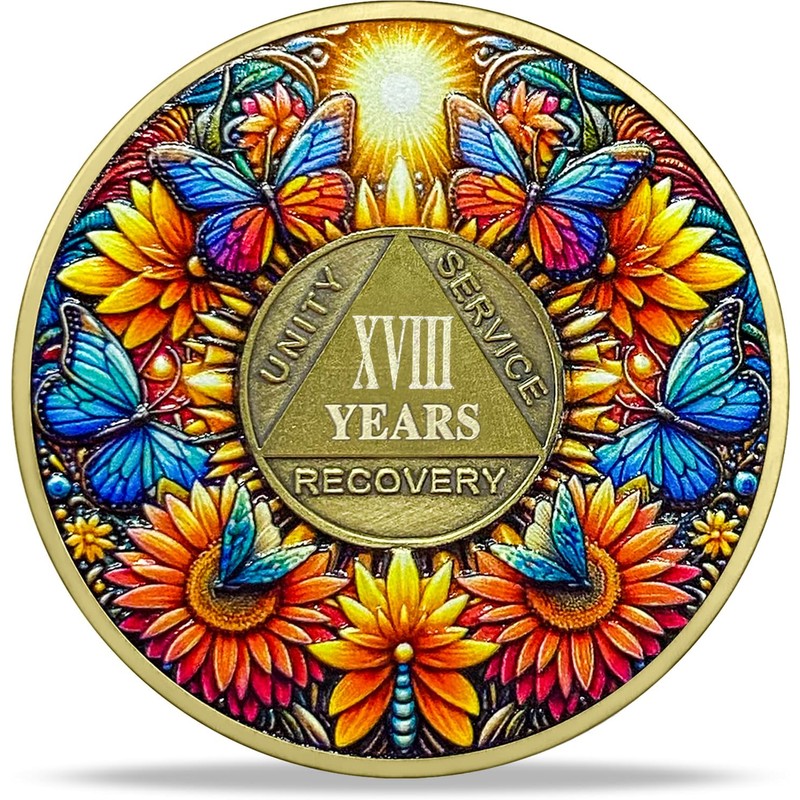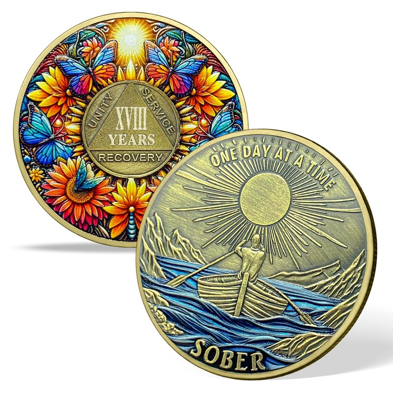 - Why You Should Buy This 18 Year Sobriety Coin is not merely a keepsake but a potent symbol of the enduring journey in Alcoholics Anonymous. The design elements of the sun, boat, and butterflies, along with the Serenity Prayer, encapsulate the strength and unity of the recovery community. Whether for personal use or as a gifts, this coin acts as a daily reminder of resilience, hope, and the unwavering pursuit of sobriety.