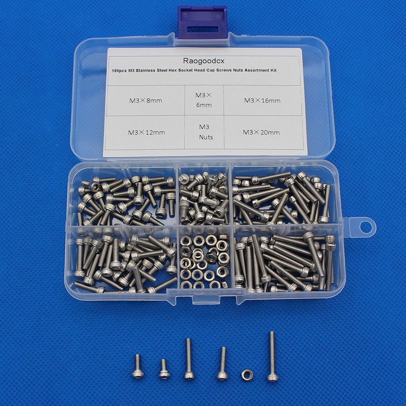 180本入リ M3 六角穴付ボルト セット 六角ネジ 六角ソケット 皿頭ボルト セット ステンレス鋼 フラットヘッドボルト ナットキット 修理ツール 収納ケース付き