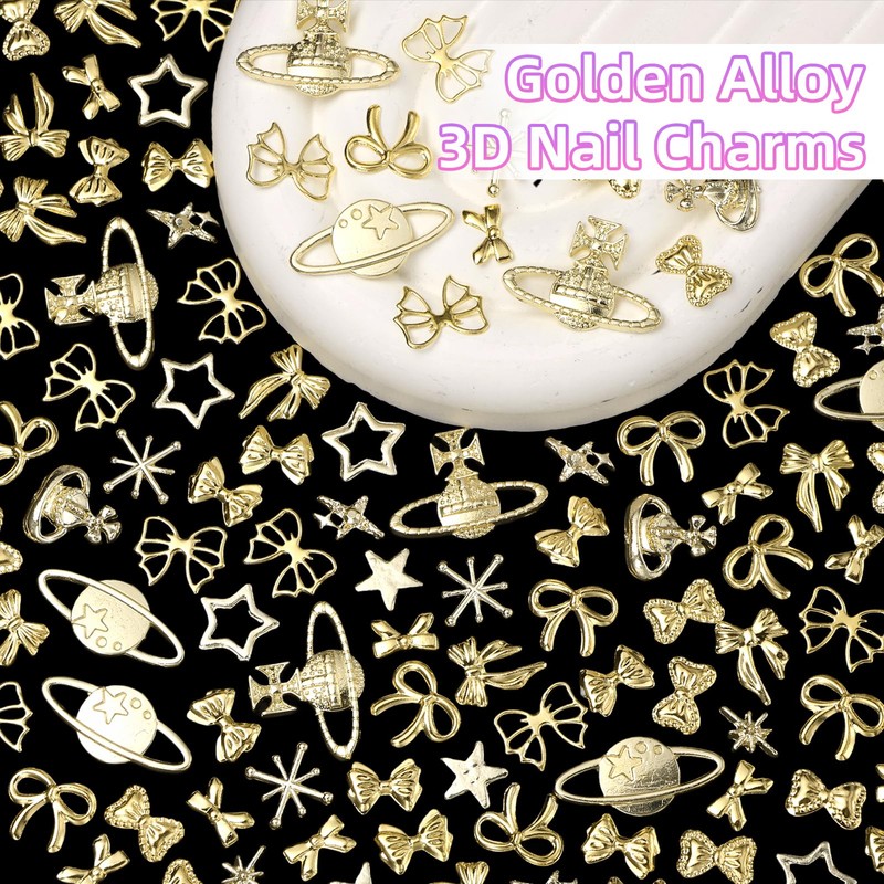 - You Will Receive: 140Pcs bows shaped nail studs rivets in gold color, 40pcs 3D star planet nail charms. Total 180 Pcs. It is a great amount of golden nail bows charms for you to make various nail designs