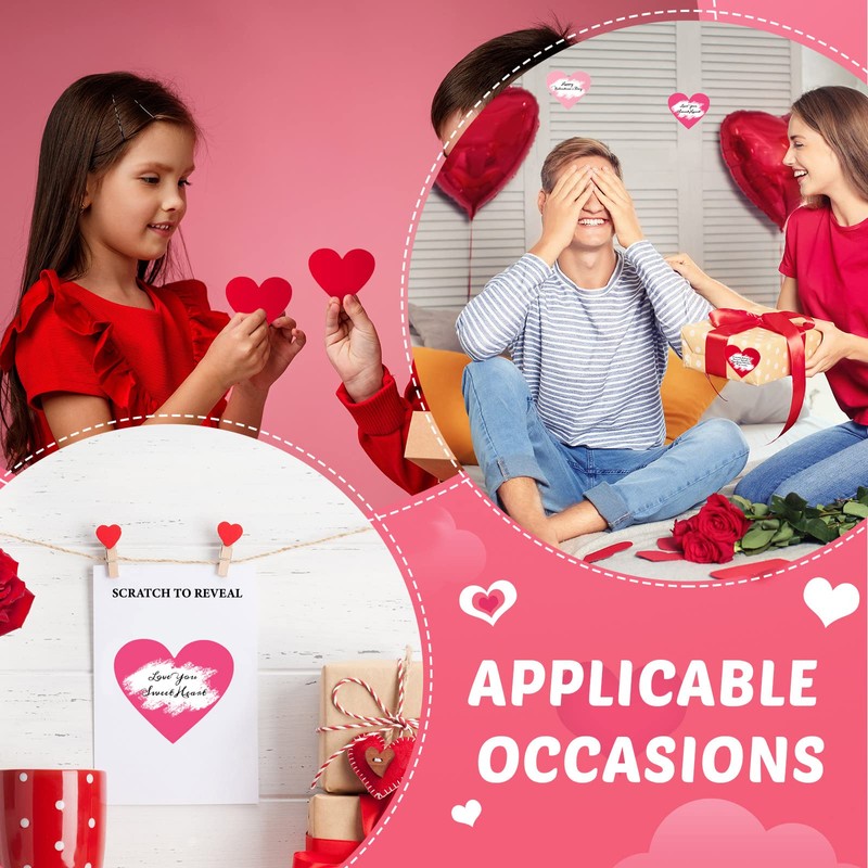 - Create a Romantic Atmosphere: the scratch off stickers for Valentine's Day set adopts the classic Valentine's Day colors, red, rose red, pink, and designed in a love shape; The classic elements are in line with Valentine's Day, adding romantic atmosphere sense
