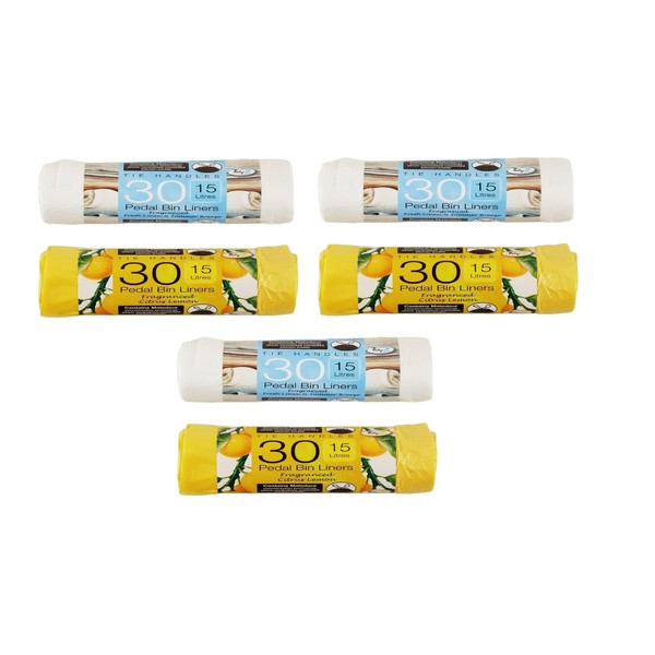 180 Scented Pedal Bin Liners Tie Handle Bin Bags 15 Litre Fresh Linen & Citrus