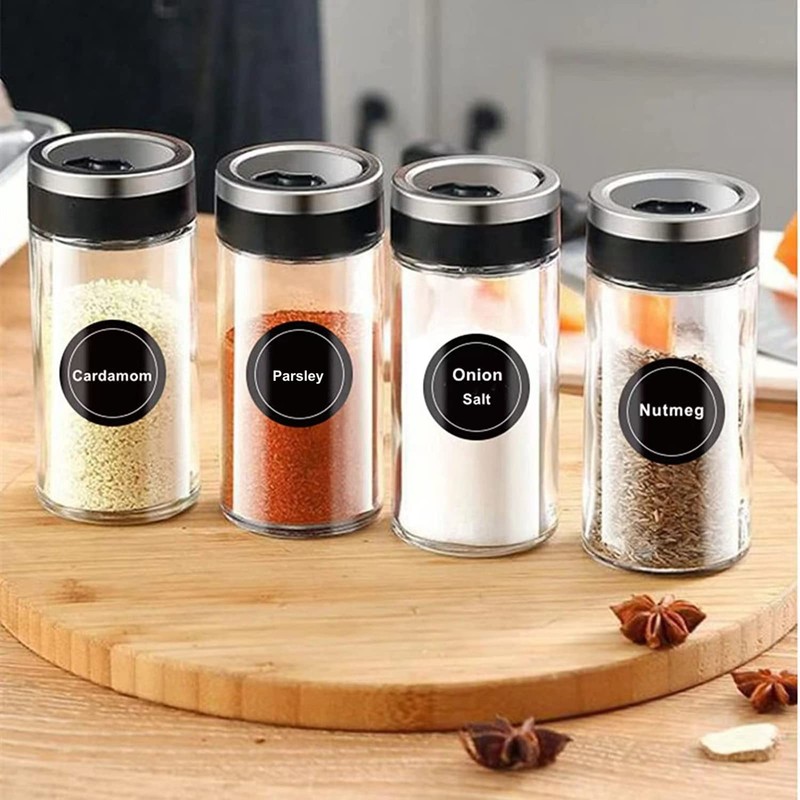 - Strong Adhesion: Self adhesive spice label for glass spice jar, mason jar, plastic containers, helps you name all your spice containers with labels, perfect for spice set, such as salt saver, the home edit containers, spice bottles, fridge can, jar lids, caps, etc. These kitchen essential preprinted stickers and reusable labels for food containers will not easily peel off and tear off after sticking.