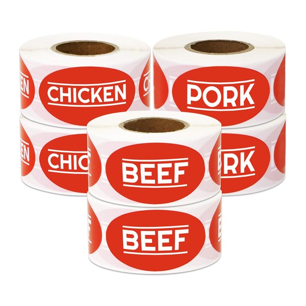 1800 Labels - Beef Chicken Pork Meat Sticker Bundle for Meat Markets, Supermarkets, Food Labeling or Butchers (1.75 x 1 inch, Red - 6 Rolls)