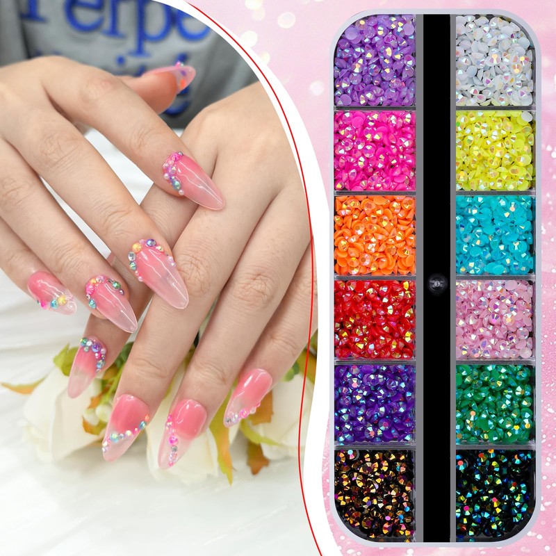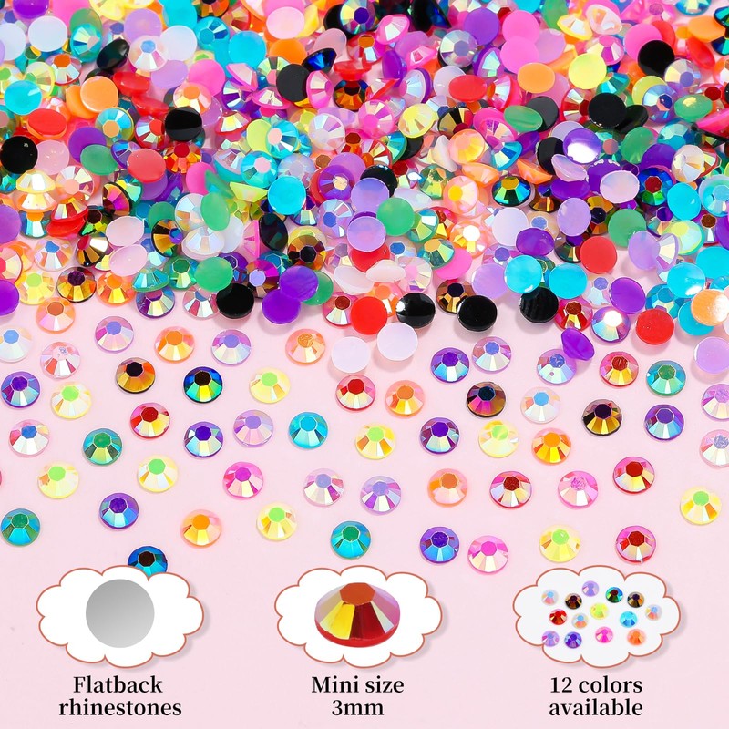 - 3mm Mini 3D Rhinestones: Made of durable resin crystal, these 3mm (0.12in) flatback gems add dazzling shine to gel, acrylic, and press-on nail designs.
