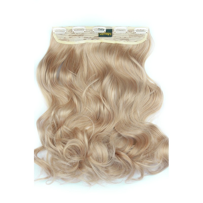 180g BOMBSHELL HAIR EXTENSIONS 24" 5 Clips Curly One Piece Half Head Clip On Hair Extensions Wig (M05 LIGHT MEDIUM BLONDE)