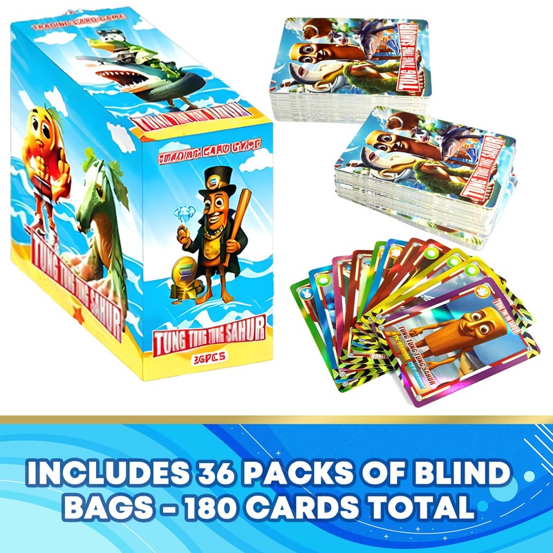 - 【36 Surprise Blind Bags】: Hunt Rare Cards! Unbox 36 sealed mystery packs (5 cards/bag). Discover ultra-rare characters (Melancholic Camel Fridge, Ballerina Capuccina) - perfect for trading & collecting.