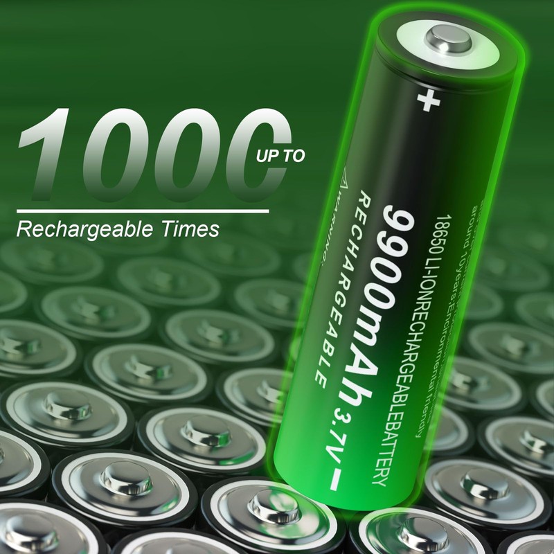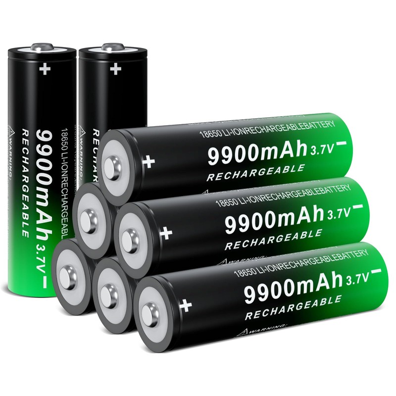 18650 Rechargeable Battery 9900mAh Large Capacity 3.7Volt Li-ion Batteries for Flashlight Headlamp (Button Top, 8 Pack)