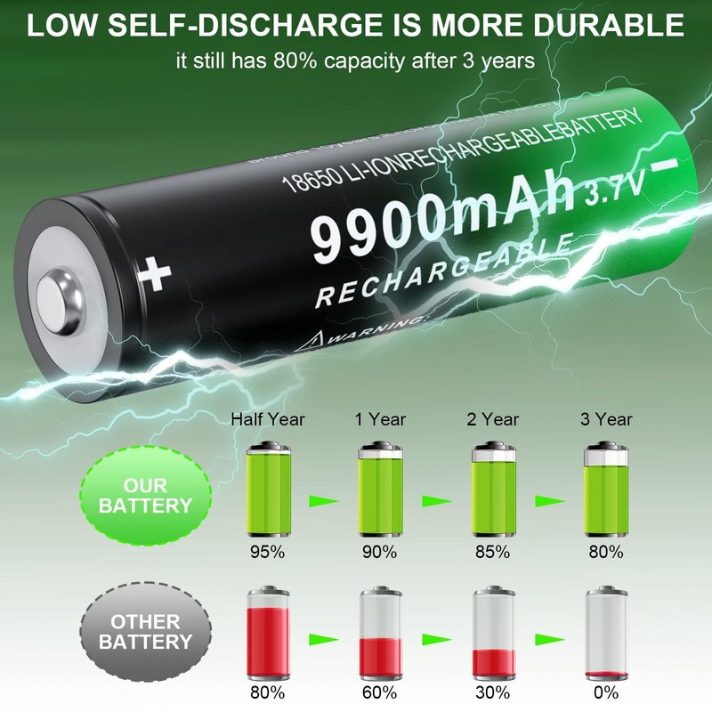 - 【Wide Compatibility】18650 rechargeable battery is compatible with versatile devices, such as headlamps, flashlights, doorbells,cameras, mini fans,toys and other electronic devices.Helps you quickly wake up your devices at any time