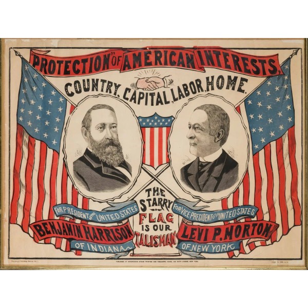 1888 Benjamin Harrison Campaign Poster NEW Metal Sign: "Flag is our Talisman"
