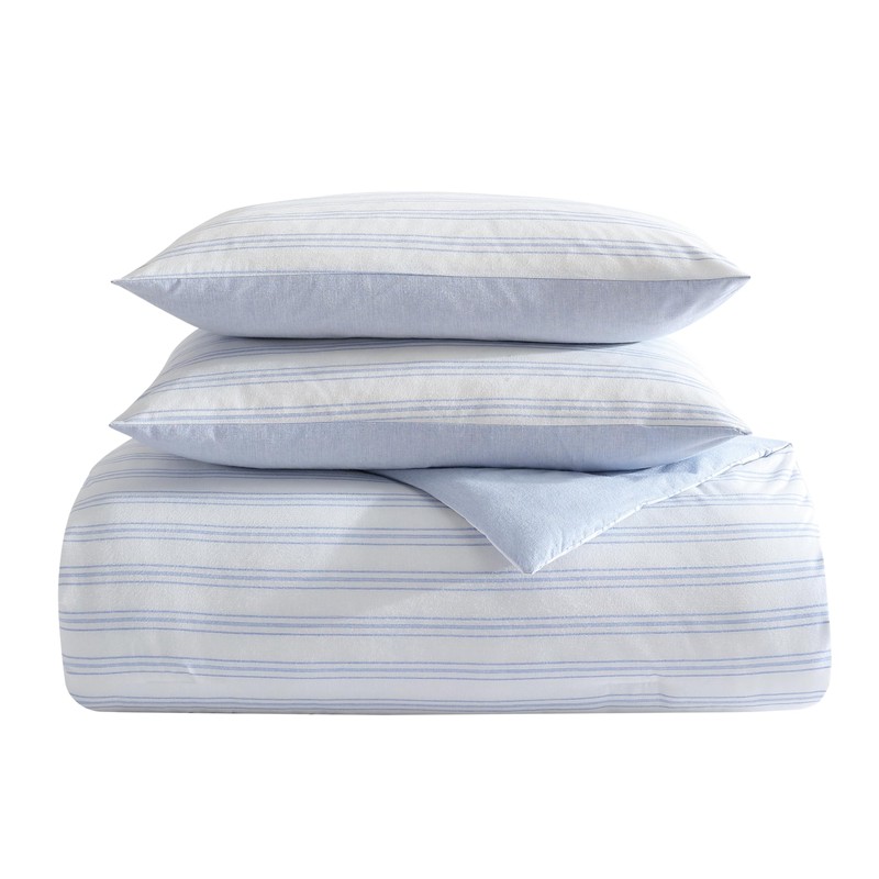 - COMFORT AND DURABILITY: Transform your bedroom with the Easy Eco 3pc Striped Comforter Set—crafted for durability and eco-conscious living. Made from sustainable materials, this set is 100% bleach safe and resistant to benzoyl peroxide, making it ideal for long-lasting comfort and easy maintenance.