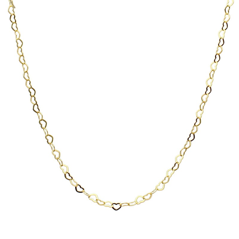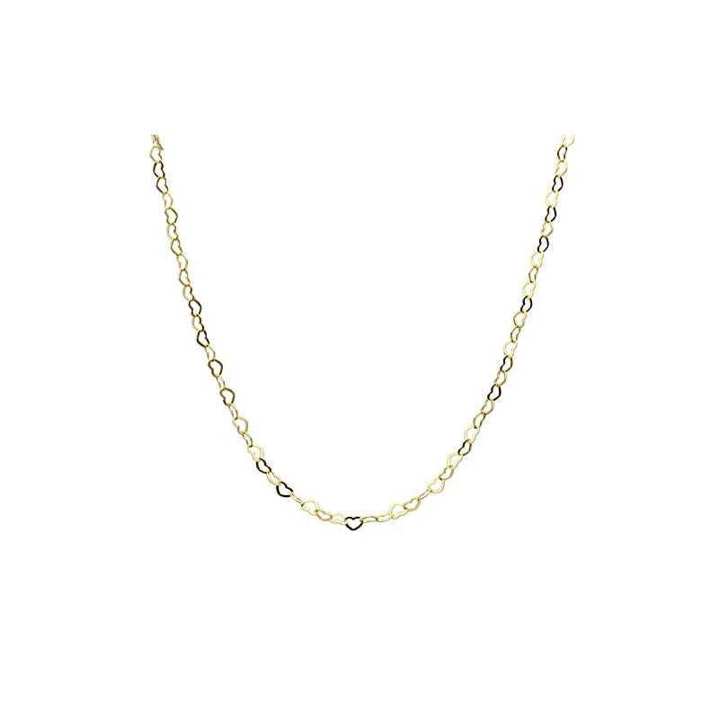 18k Gold-Flashed Flat Heart Sterling Silver Nickel Free Chain Necklace Italy 16"