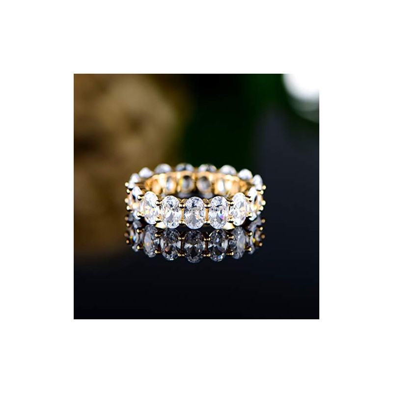 18k Gold Plated Womens Eternity Wedding Band Oval Cut Cubic Zirconia Ring (Gold, 6)