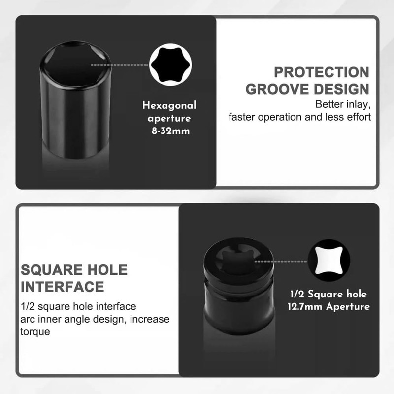 - Application: Seamlessly integrates with impact socket adapters to convert 1/2" square drives for hex bits, ideal for automotive repairs and heavy-duty machinery maintenance